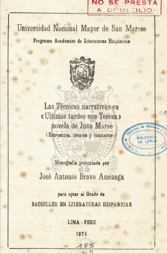 Las técnicas narrativas en “Últimas tardes con Teresa” novela de Juan Marsé (Estructura, técnicas y constantes)