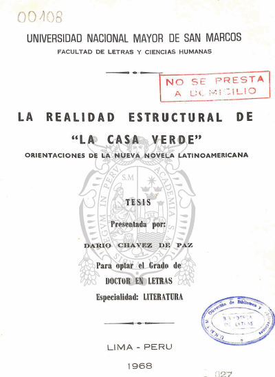 La realidad estructural de “La casa verde” orientaciones de la nueva novela latinoamericana