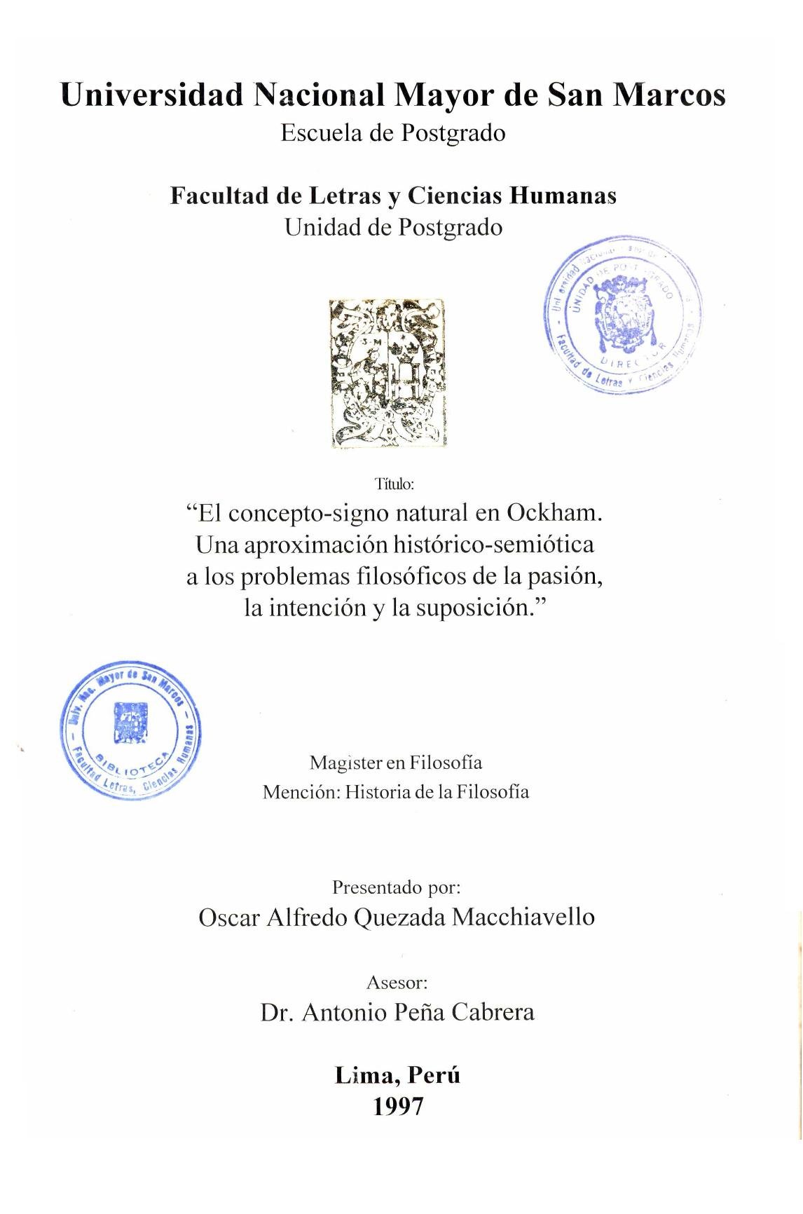 Quezada, O. (1997). El concepto-signo natural en Ockham. Una aproximación históricosemiótica a los problemas filosóficos de la pasión, la intención y la suposición. [Tesis para optar el grado de Magíster en Filosofía]. Universidad Nacional Mayor de San Marcos. Facultad de Letras y Ciencias Humanas. Unidad de Posgrado.