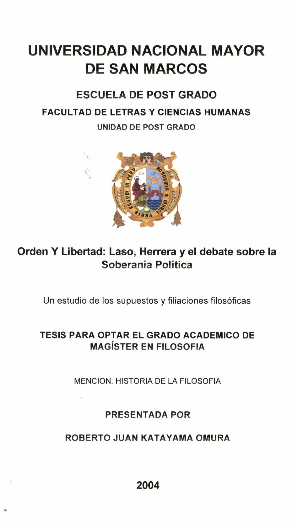 Katayama, R. (2004). Orden y libertad: Laso, Herrera y el debate sobre la soberanía política. [Tesis para optar el grado de Magíster en Filosofía]. Universidad Nacional Mayor de San Marcos. Facultad de Letras y Ciencias Humanas. Unidad de Posgrado.