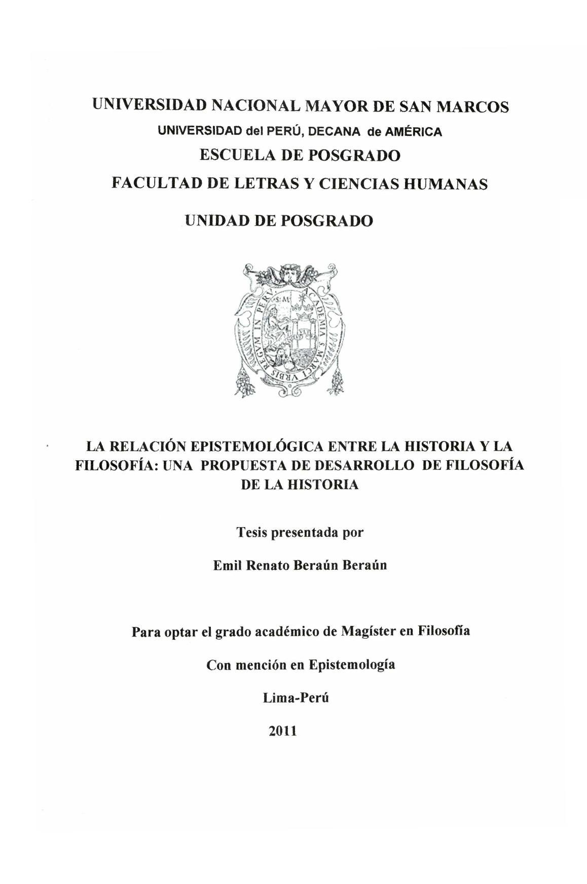Beraún, E. (2011). La relación epistemológica entre la historia y la filosofía: Una propuesta de desarrollo de filosofía de la historia [Tesis para optar el grado de Magíster en Filosofía con mención en Epistemología]. Universidad Nacional Mayor de San Marcos. Facultad de Letras y Ciencias Humanas. Unidad de Posgrado.