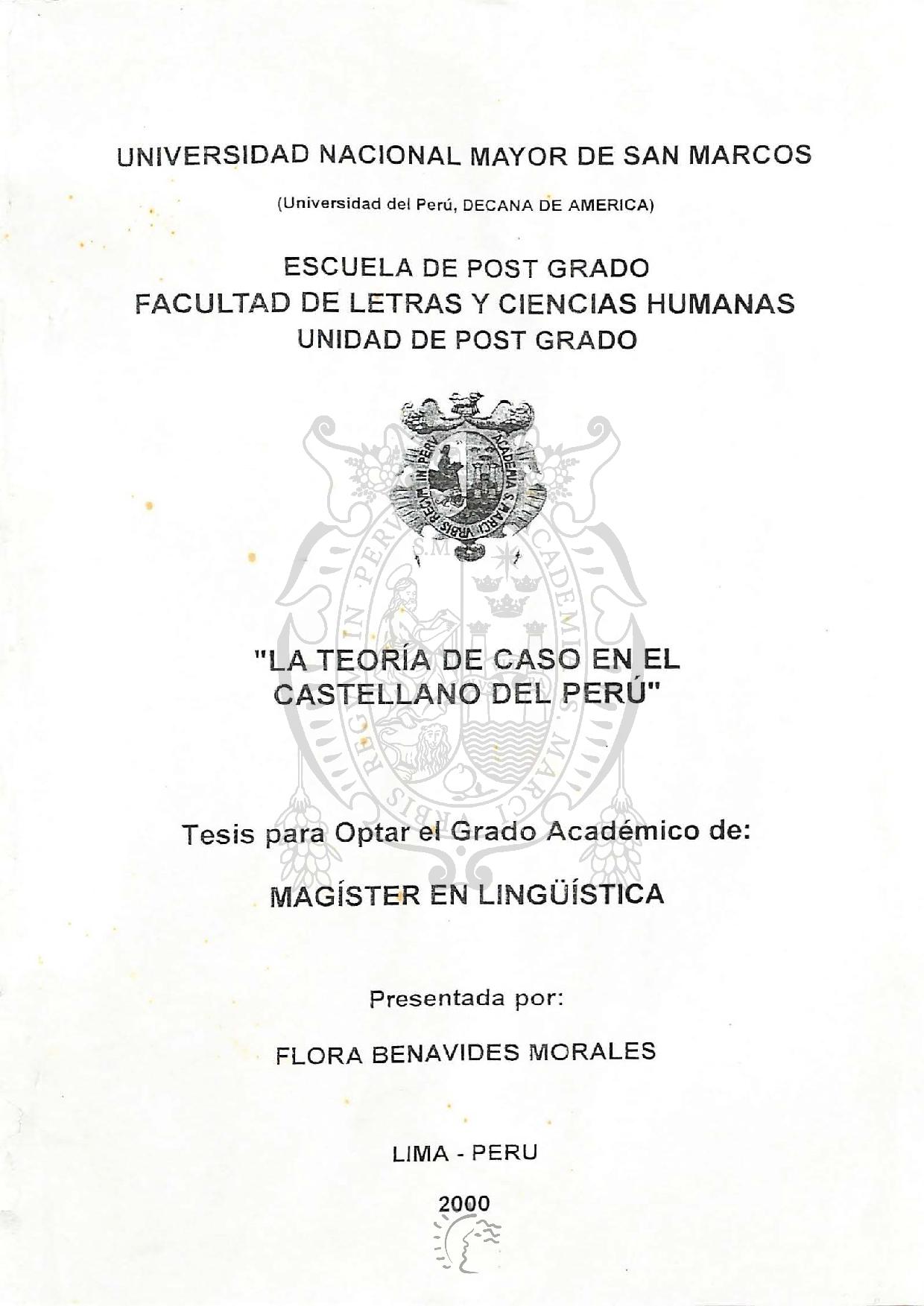 Benavides, F. (2000). La teoría de caso en el castellano del Perú [Tesis para optar el grado de magíster en Lingüística]. Universidad Nacional Mayor de San Marcos. Facultad de Letras y Ciencias Humanas. Unidad de Posgrado.