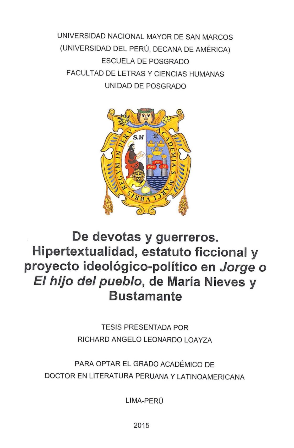 De devotas y guerreros: Hipersexualidad, estatuto ficcional y proyecto ideológico-político en Jorge o El hijo del pueblo de María Nieves y Bustamante
