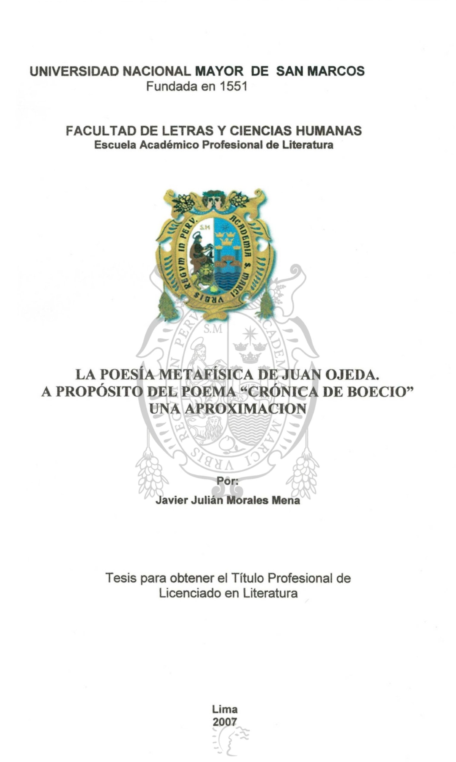 HomeArticulosTesis digitalesLiteraturaLa poesía metafísica de Juan Ojeda. A propósito del poema “Crónica de Boecio” una aproximaciónLa poesía metafísica de Juan Ojeda. A propósito del poema “Crónica de Boecio” una aproximación Additional information Autor : Morales Mena, Javier. Año de publicación: 2007. Tipo de tesis : Tesis de licenciatura. Ver resúmen Ver más Descripción