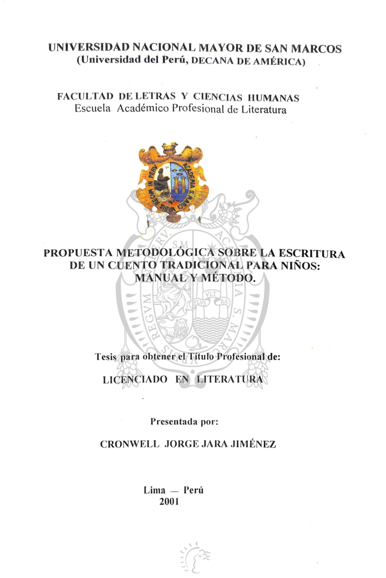 HomeArticulosTesis digitalesLiteraturaPropuesta metodológica sobre la escritura de un cuento tradicional para niños: Manual y métodoPropuesta metodológica sobre la escritura de un cuento tradicional para niños: Manual y método Additional information Autor : Jara Jiménez, Cronwell. Año de publicación: 2001 Tipo de tesis : Tesis de licenciatura. Ver resúmen Ver más Descripción